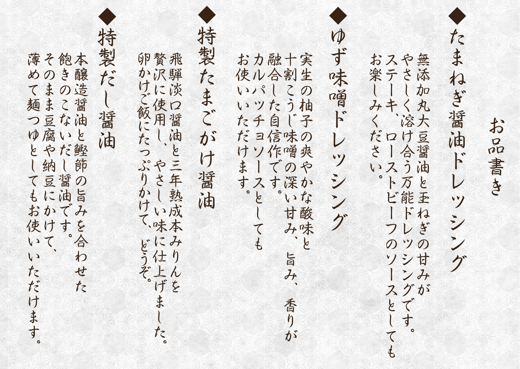 ・お品書き