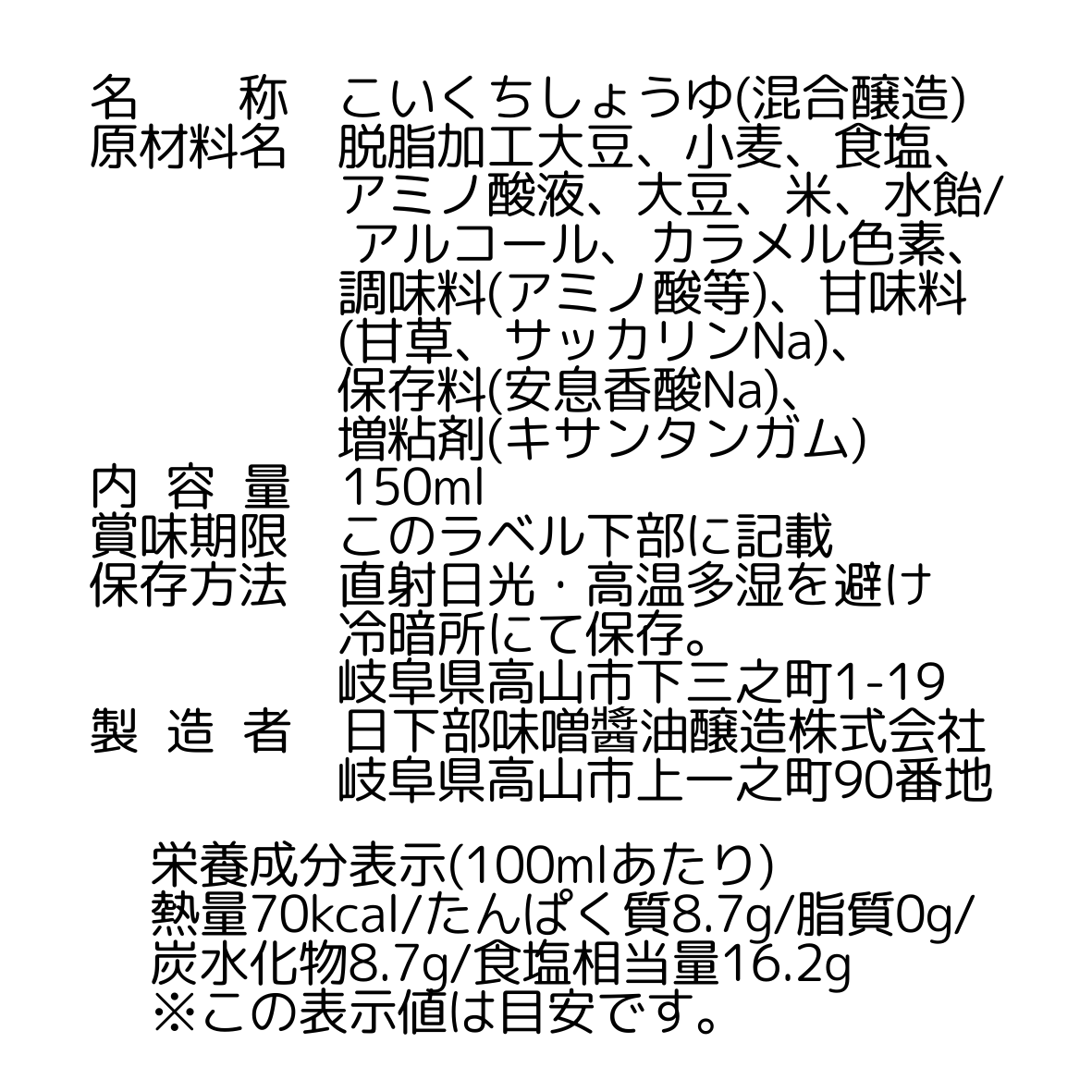 別誂たまり醤油(濃口) 150ml